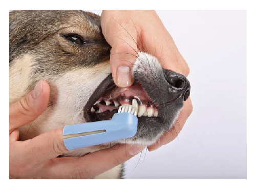 There are two types of toothbrushes on the market the long-handled toothbrush and a Finger Brush. Use whichever one you feel comfortable with. The Long Handled toothbrush is good to get all the way to the back teeth. The finger brush does the same, but you might have to put your whole hand in your dog’s mouth.